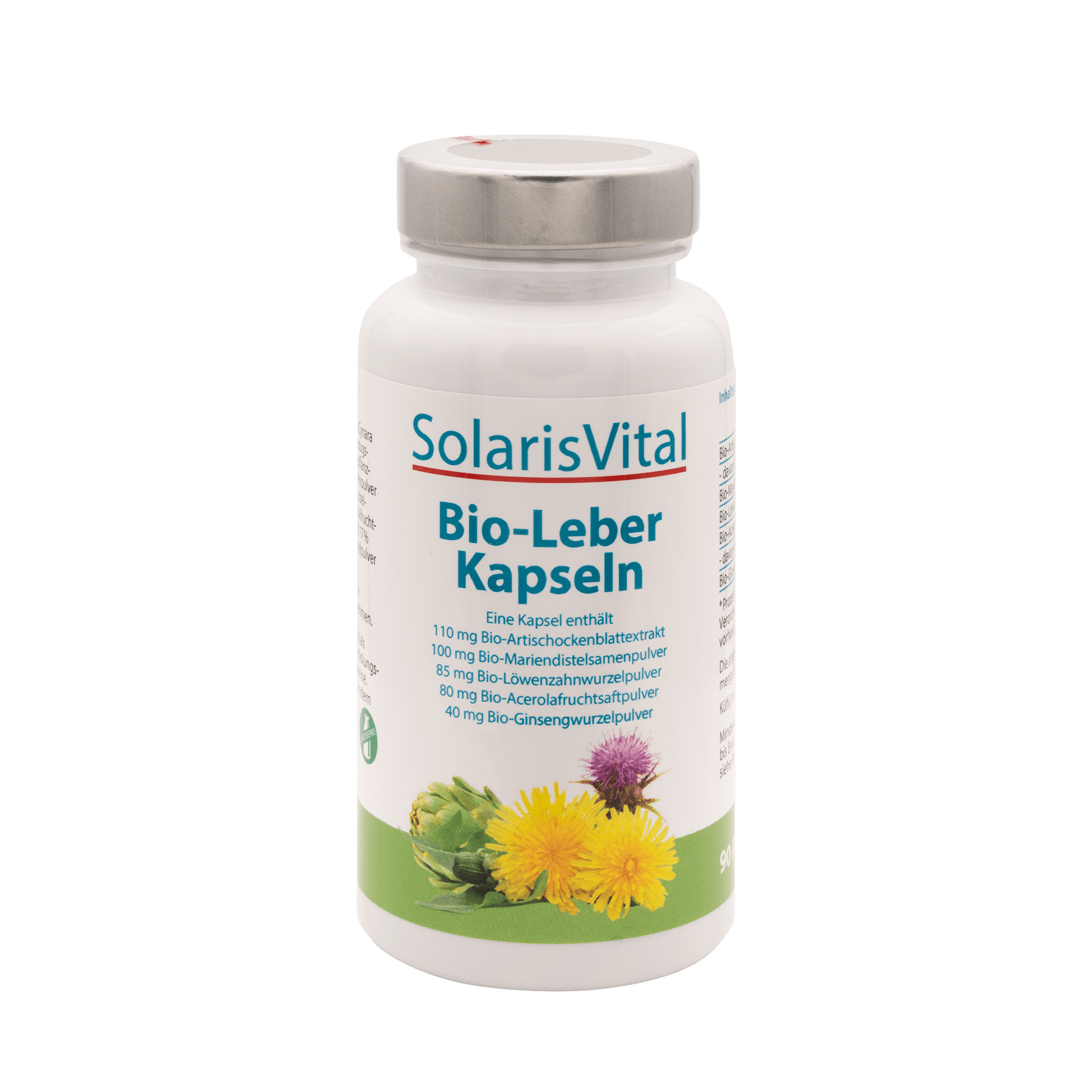 Die Bio-Leber Kapseln von SolarisVital kombinieren die drei traditionellen Bitterstoff-Pflanzen: Artischocke(-pulver), Mariendistel(-samen) und Löwenzahn(-pulver). Die Rezeptur ist sinnvoll mit Ginseng und natürlichem Vitamin C aus Acerola abgerundet.
