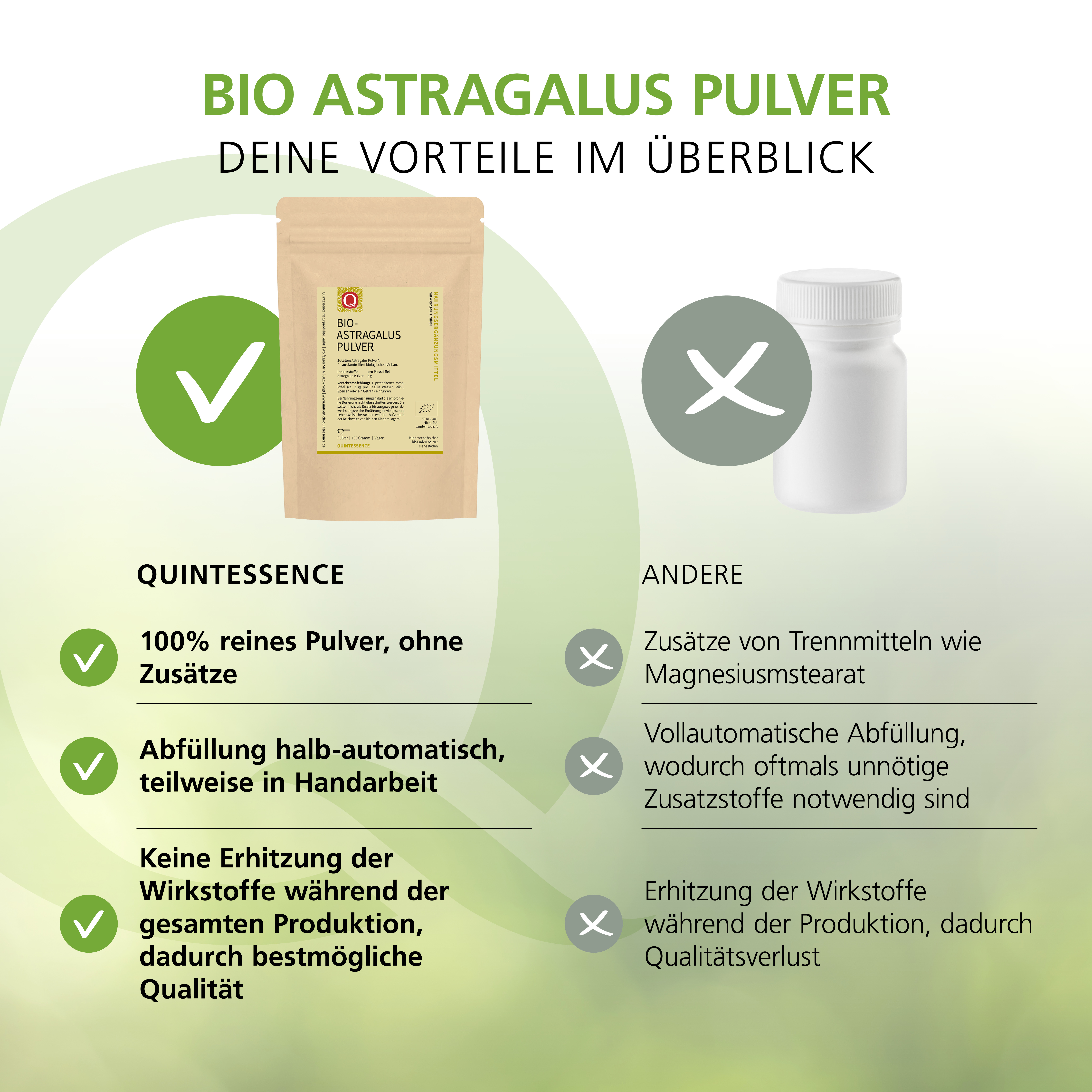 Astragalus steht für ein hervorragendes Wohlbefinden. Mit unserem Bio-Astragalus Pulver kannst du dein Wohlbefinden in herausfordernden Zeiten zu unterstützen. Du kannst das Super-Food einfach in Speisen, Müsli oder Smoothies einrühren und essen oder trinken.