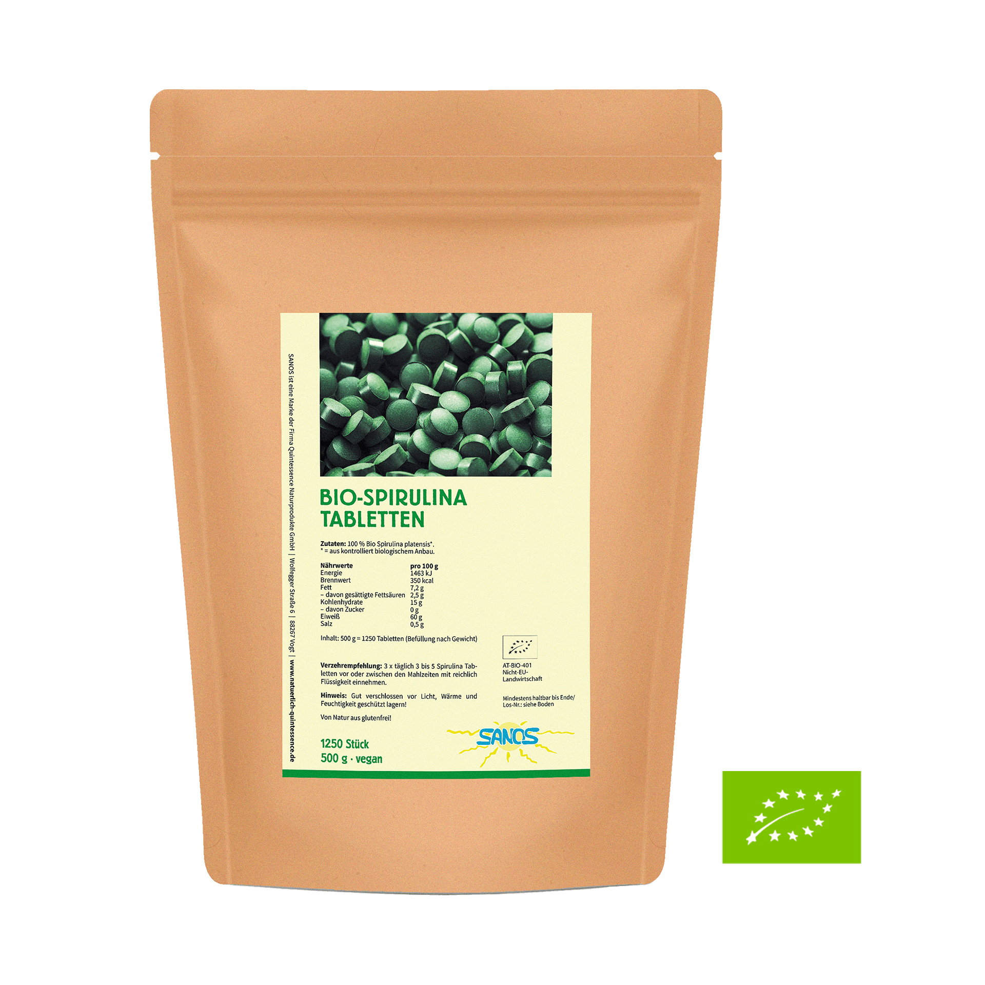 Bio-Spirulina Tabletten, 1250 Stück, 500 g in Bioqualität von Sanos