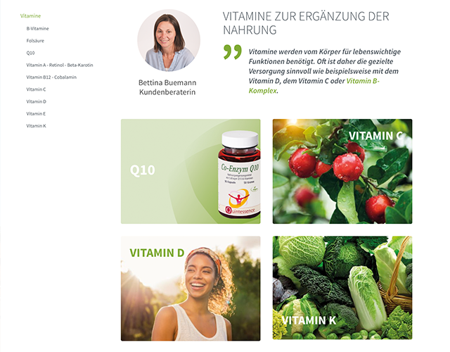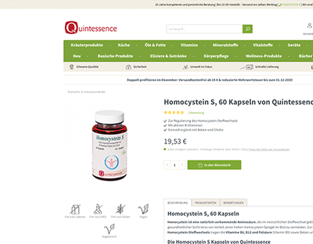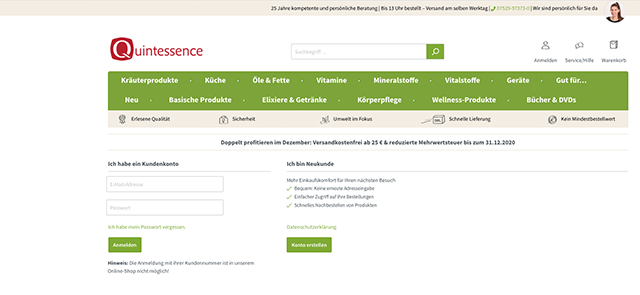 Der neue Quintessence Online Shop ist noch übersichtlicher. Durch ein breiteres Layout steht mehr Platz für die relevanten Informationen zur Verfügung. Große und stimmungsvolle Bilder greifen die Themen der jeweiligen Seiten auf. Mehr Berater-Empfehlungen in den Kategorien und auf den Produktdetailseiten bieten Ihnen noch mehr Informationen zu unseren Produkten.