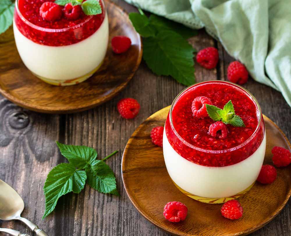 Vanille-Mousse mit Himbeer-Sauce